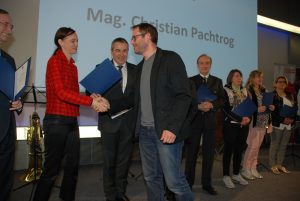 In die Top 15 schafften es auch zwei Lehrerpersönlichkeiten der HLW HORN. Mag. Christian Pachtrog und Ing. Harald Moun Bed wurden für die kompetente Projektbetreuung von Egadin Adventure (www.engadin-adventure.ch) und dem Fachgeschäft Blumen Jikru (www.jirku.at) geehrt.